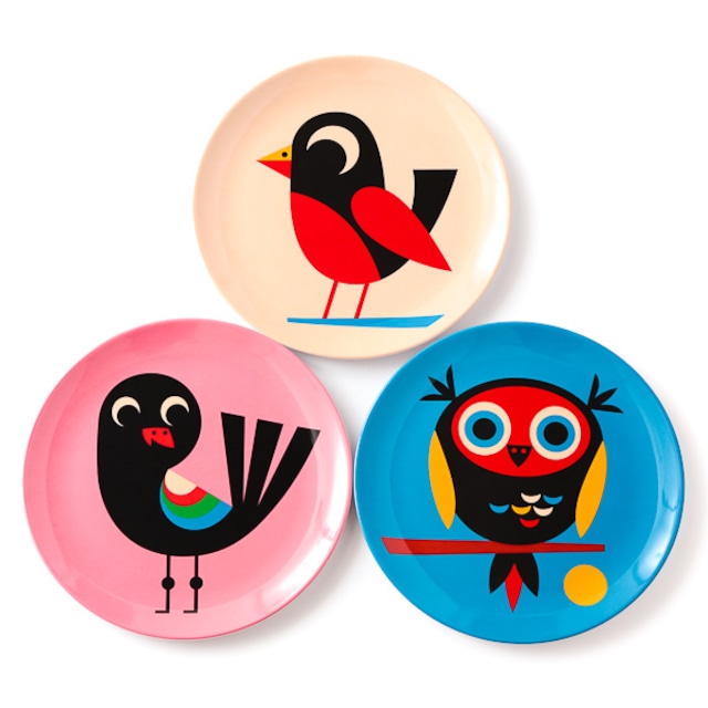 スウェーデンの人気イラストレーター、インゲラ・アリアニウスの小鳥さんのイラストが描かれた、カラフルで可愛いお皿です。